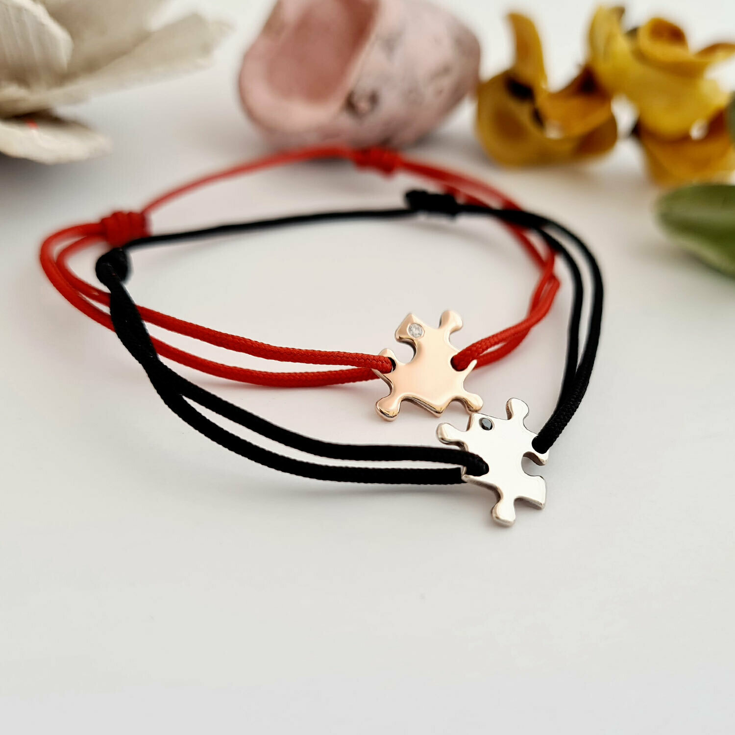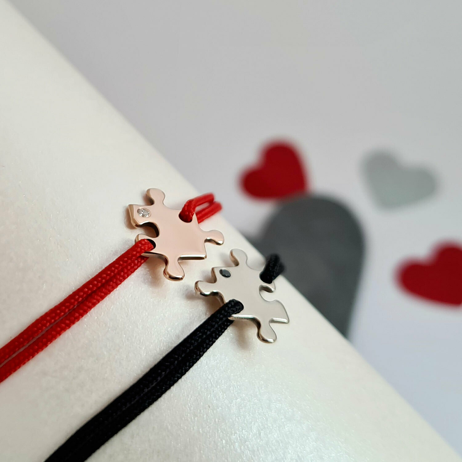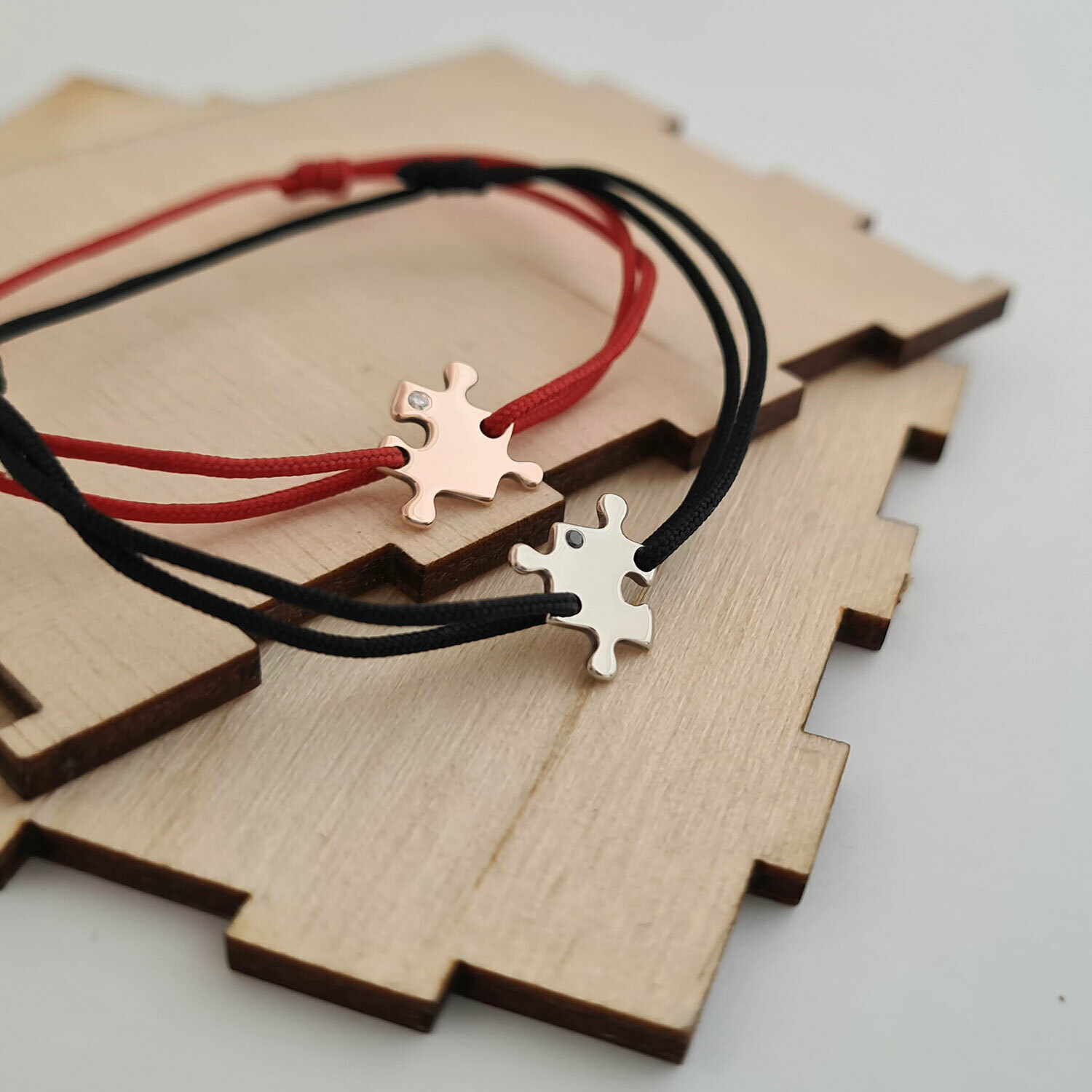 Setul de bratari puzzle exprima o conexiune puternica si reala, 2 piese ce se impletesc in dragoste precum 2 suflete pereche.