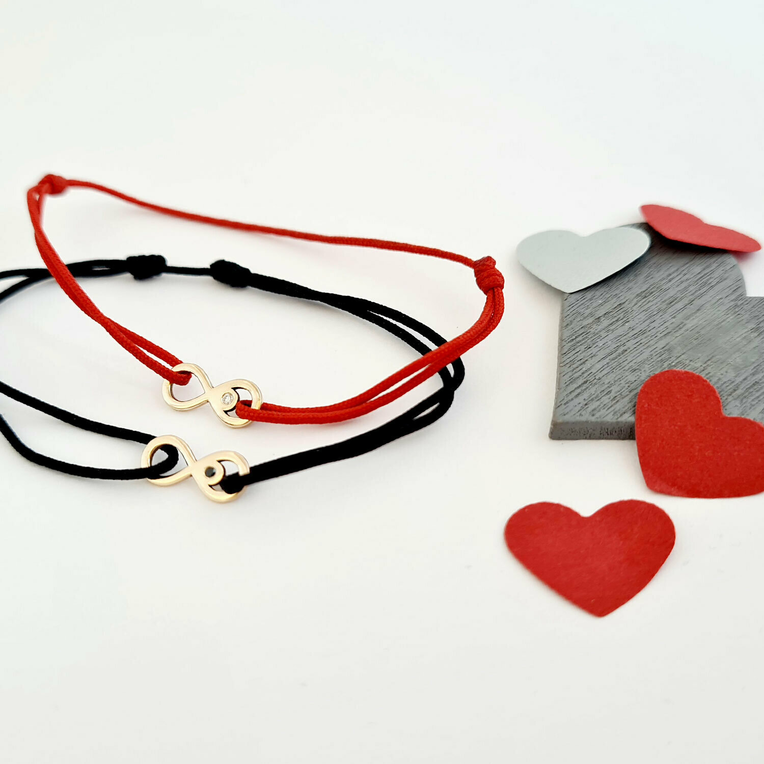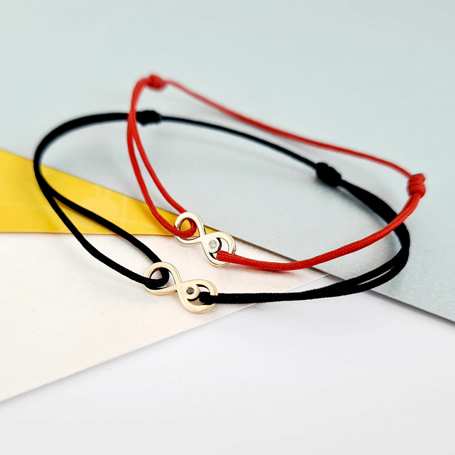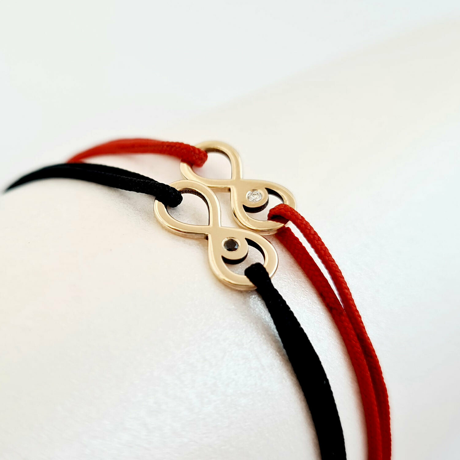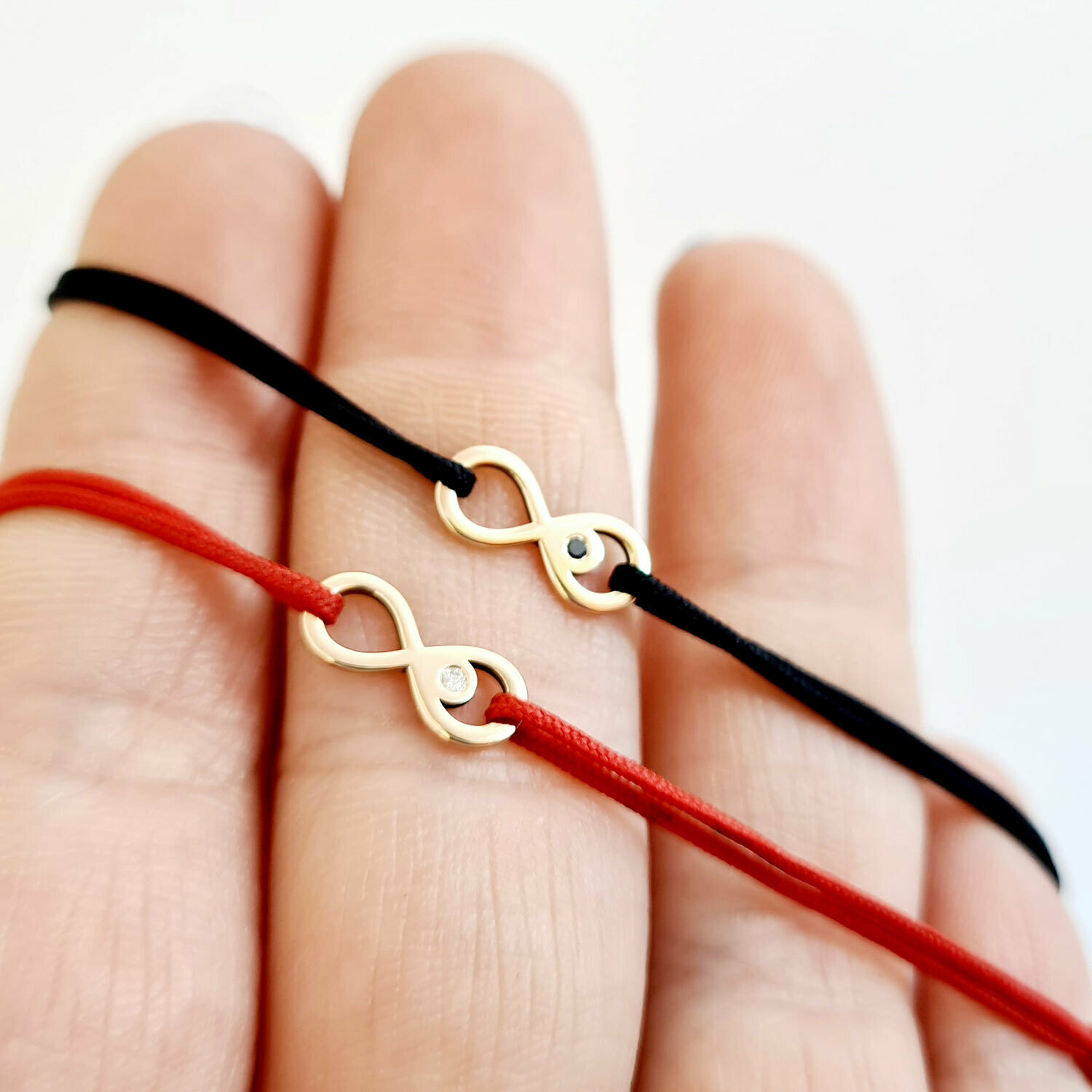 Set 2 bratari cu Diamant natural - Model infinit - Aur Galben 14K si snur reglabil